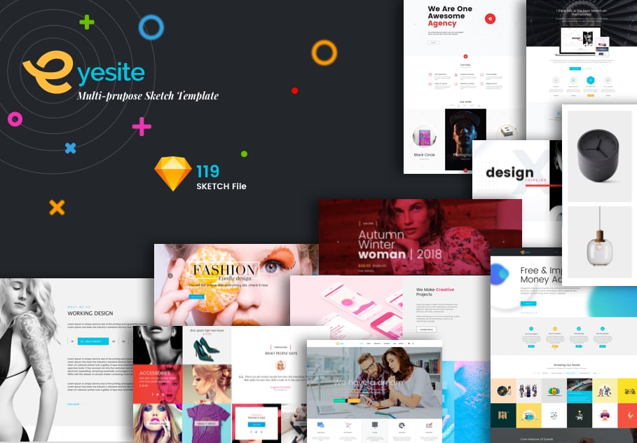 Multi-Purpose SKETCH Template UI Kit is modern, clean, multiple functions and professionally. We have created 119 SKETCH files, It has 18 Homepage layout Options! This SKETCH template suits for any type of portfolio, creative, corporate, agency, bussines, fashions, model, shopping and more… The SKETCH is designed on grid 1170 px and can be easily conversion into responsive HTML, Wordpress, Joomla and other systems. This is a perfect choice!